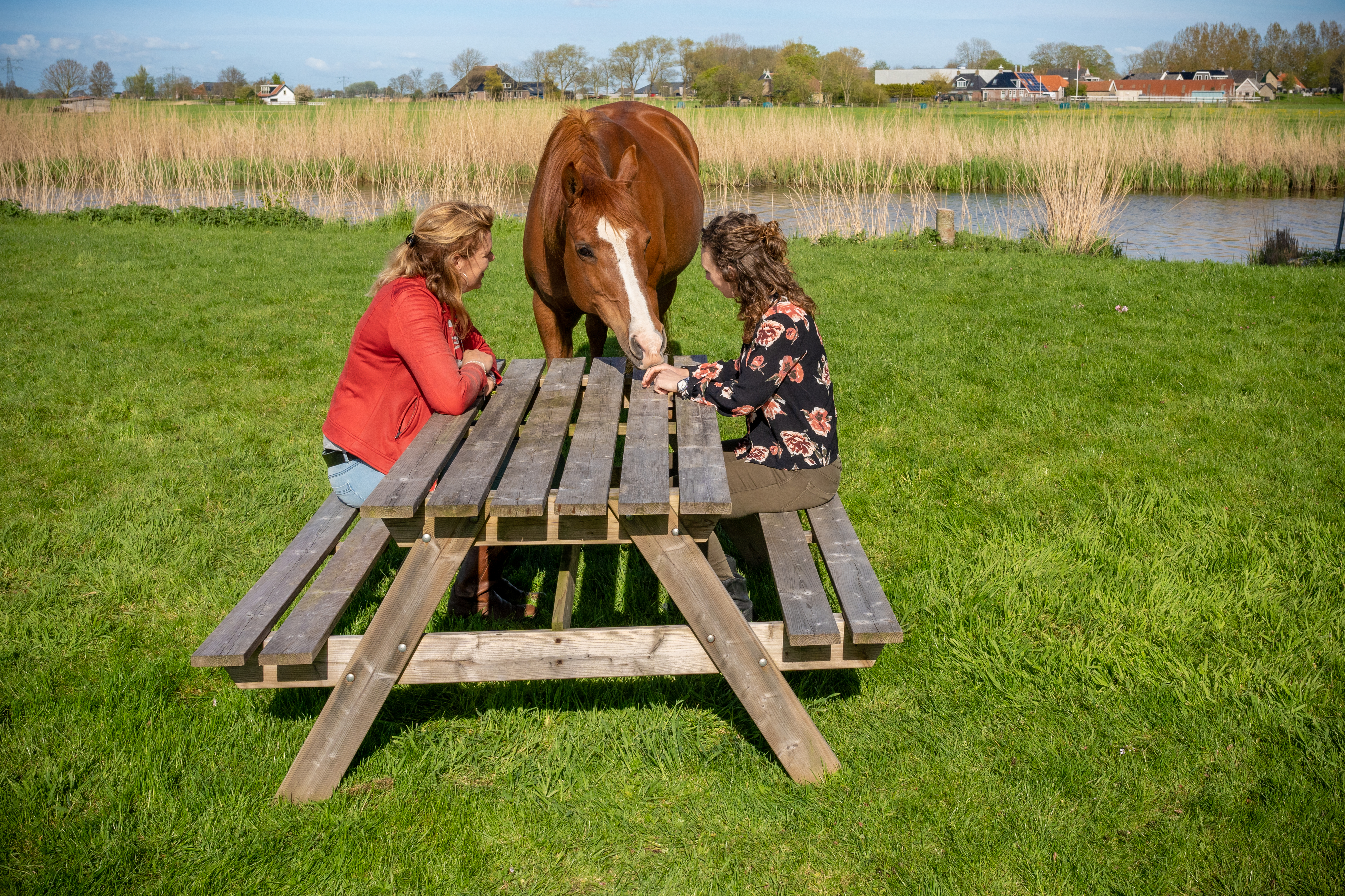 Paarden hebben dus bijzondere kwaliteiten die je kunnen helpen bij persoonlijke groei en zelfvertrouwen. Zelfs als jij “als mens” bij een paard in de bak komt, ziet het paard jou als onderdeel van zijn kudde. Hij observeert je continu, spiegelt jouw gedrag en geeft daardoor puur en direct inzicht in je gedachten, houding en handelen.